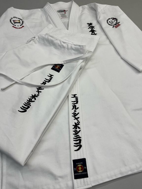Заказать доги (кимоно) каратэ на нашем производстве в Екатеринбурге можно указав размер одежды и рост спортсмена.